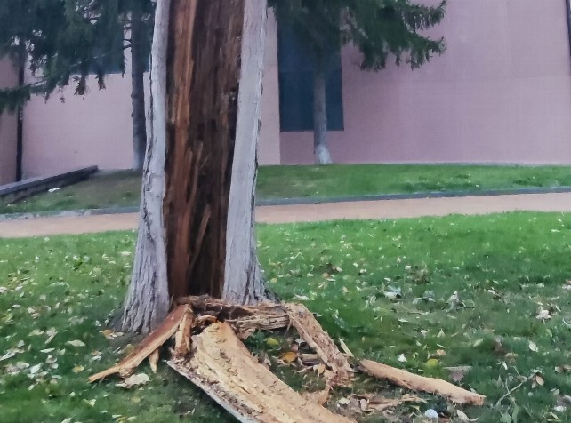 Un lector de este digital nos envía esta fotografía en las que se aprecia un árbol caído a causa de la podredumbre, después de que, según denuncia, se avisara en varias ocasiones a los operarios de jardines para su retirada