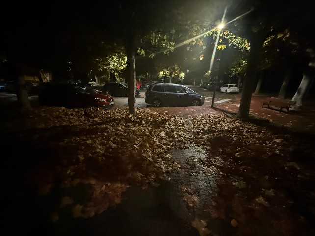 Tal y como se puede apreciar en las fotografías las aceras de la Plaza Dos de Mayo están tapadas por las hojas caídas con el riesgo que supone para los viandantes de sufrir una caída o resbalarse, agravado además por la falta de luz y la lluvia, que hace el piso todavía sea más peligroso.